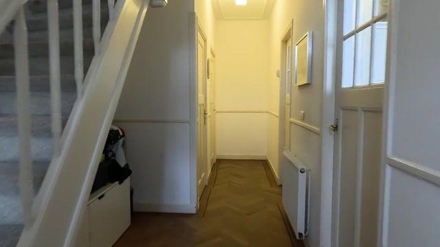 entree op straatniveau; vestibule ca. 1,70x1,80m met meterkast (elektra 11 groepen + 3x ALS + omvormer zonnepanelen) en dubbele deuren naar de hal met bergruimte onder de trapopgang, betegeld toilet met fontein en een betegelde wasruimte ca. 0,95x1,70m met opstelling wasmachine, droger en cv-combiketel (Remeha 2021); voor- en achterkamer ensuite voorzien van schuifseparatie en 4 vaste kasten; voorkamer ca. 3,75x5,80m voorzien van een fraaie Eikenhouten visgraat parketvloer met bies doorlopend in de achterkamer, keuken en de hal, ornamenten plafond, marmeren schouw met open haard en erker kozijn aan de voorzijde; achterkamer ca. 3,75x6,20m voorzien van convectorput, deur naar de achtertuin en doorgang naar half open keuken ca. 2,15x3,20m voorzien van een moderne hoek opgestelde keukeninstallatie (2021) met gaskookplaat, afzuigkap, combioven, vaatwasmachine en koel-/vriescombinatie; achtertuin op het westen ca. 6,30 deels 5,30x 7,25m met houten berging.