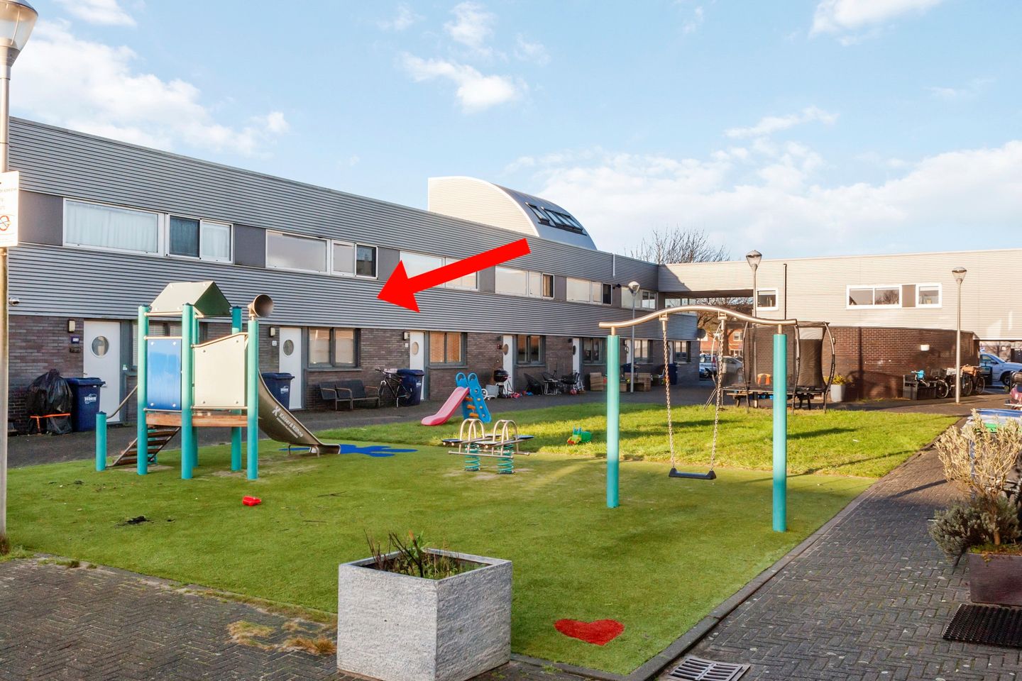 De voordeur van de woning bevindt zich in een gemoedelijk hofje met diverse speelgelegenheden voor de kleinere bewoners.