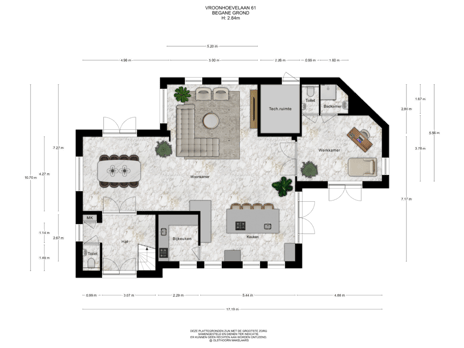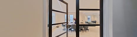 De entree met indrukwekkende vide aan de linker voorzijde zet direct de toon voor het hoge niveau van deze woning. Een overvloed aan natuurlijk licht en een open, ruimtelijke opzet zorgen voor een warm en elegant welkom. In de hal bevinden zich het stijlvolle gastentoilet en de meterkast. Vanuit hier wordt u vanzelf geleid naar de royale leefruimte, met aan de voorzijde de open leefkeuken en aan de tuinzijde het comfortabele zitgedeelte.