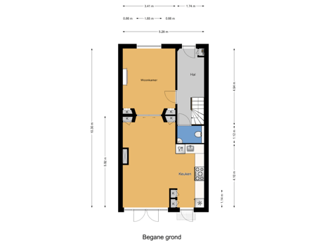 - 65 m² (11,75 meter diep en 5,50 meter breed)