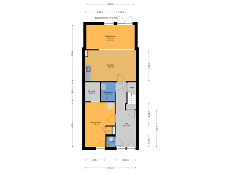 - 32 m² (6,00 meter diep en 5,40 meter breed)