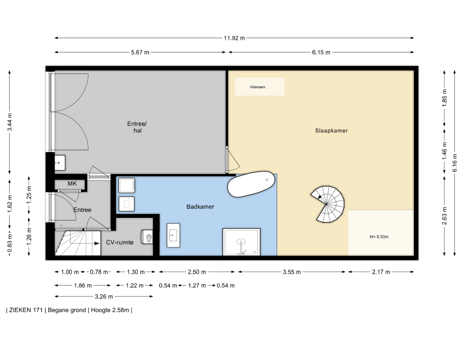 Entree, vestibule met meterkast, stookruimte met Cv-ketel en een binnentrap naar eerste verdieping. Vanuit de vestibule tevens een deur naar een ruime werkruimte/garage/entreehal.