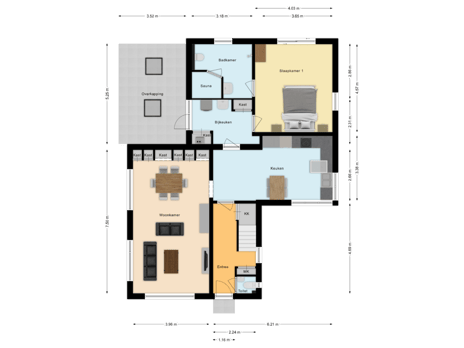 - Overkapping achterzijde aan woning met een afmeting van ca. 5.25 x 3.52 meter;