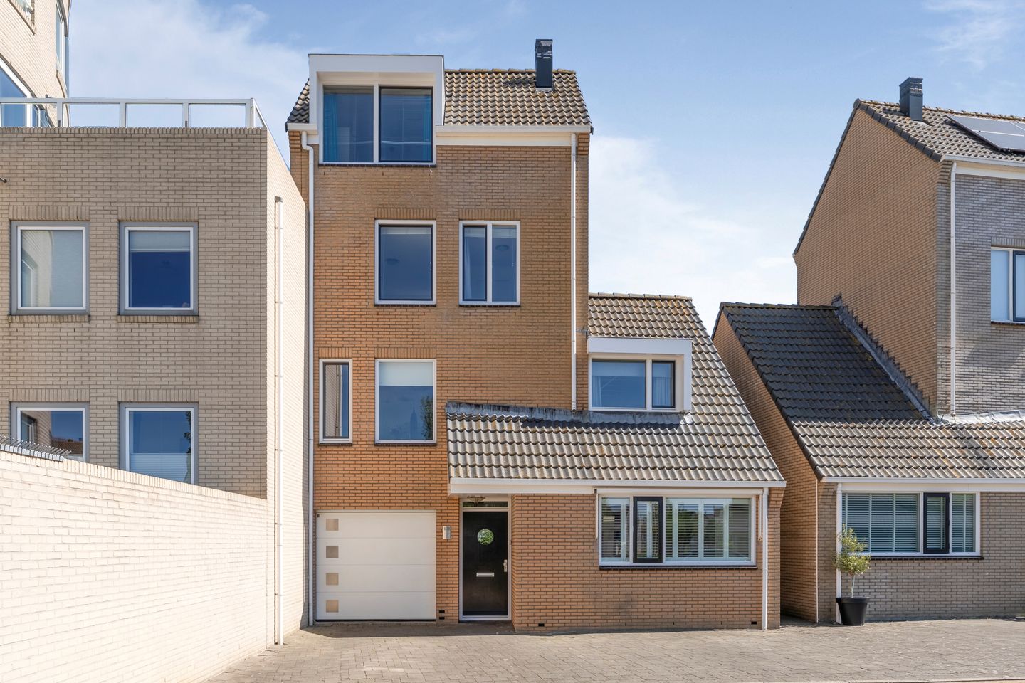 • Het betreft een woning van het grootste type uit zijn serie die aan een kant vrij is, bestaat uit vier woonlagen en drie dakkapellen.