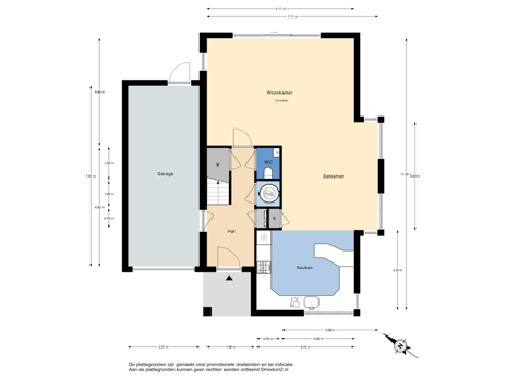 - 166 m² (12,50 meter diep en 13,30 meter breed)