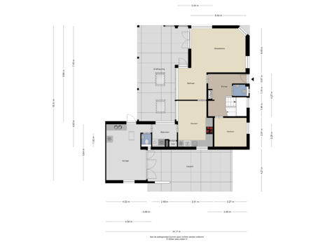 Entree; voorzien van de meterkast, het toilet en de mooie houten trap naar de eerste verdieping. Vanuit de entree is er ook toegang tot een praktisch kantoor, ideaal voor thuiswerken of studie. De eetkamer/woonkamer is het hart van het huis en is gesitueerd aan de voorzijde van de woning. Aansluitend ligt de moderne keuken met diverse Siemens inbouwapparaten, waaronder een inductiekookplaat met afzuiger, een koelkast, een vaatwasser en een combi oven/magnetron.