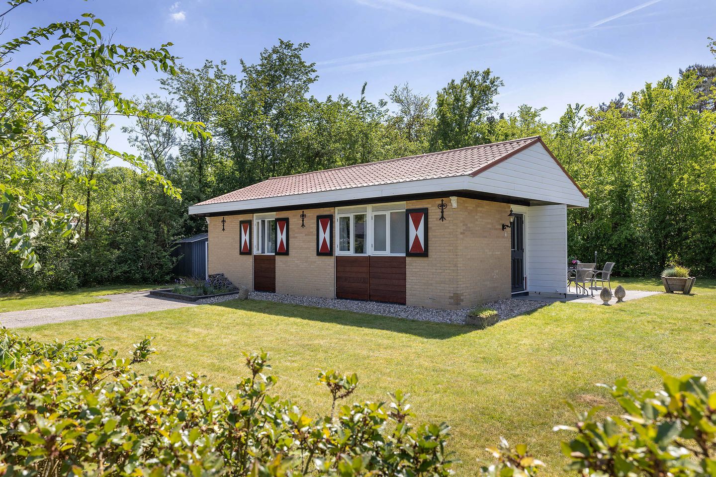 Via een houten toegangshek bereik je de ruime tuin met vrijstaande bergruimte. Het betegelde terras is aan de achterzijde van de bungalow gelegen. De tuin ligt rondom de bungalow en biedt volop ruimte voor ontspanning én speelruimte. Je kunt hier heerlijk genieten van het buitenleven, de rust en de ruimte rondom de bungalow.