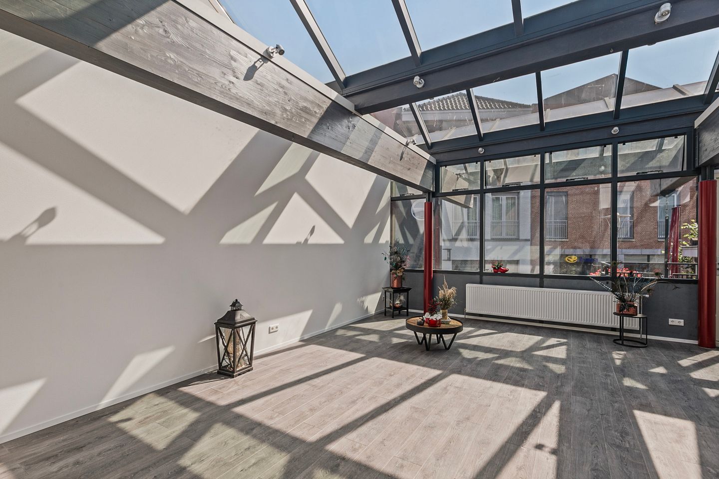 Achter de voordeur kom je in een heerlijk lichte studio. Vanuit het glazen dak en de raampartij komt er veel licht in het appartement. Als je 's avonds in bed ligt, geniet je door het dak van de sterren aan de hemel.