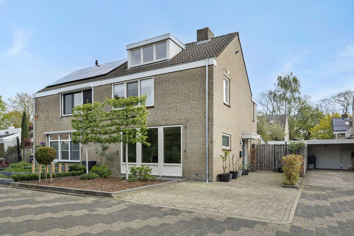 De voortuin is verzorgd aangelegd en bestaat uit vaste beplanting met aan de rechterkant een verharde oprit met plaats voor meerdere auto's.