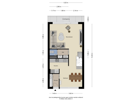 - 50 m² (10,00 meter diep en 5,00 meter breed)