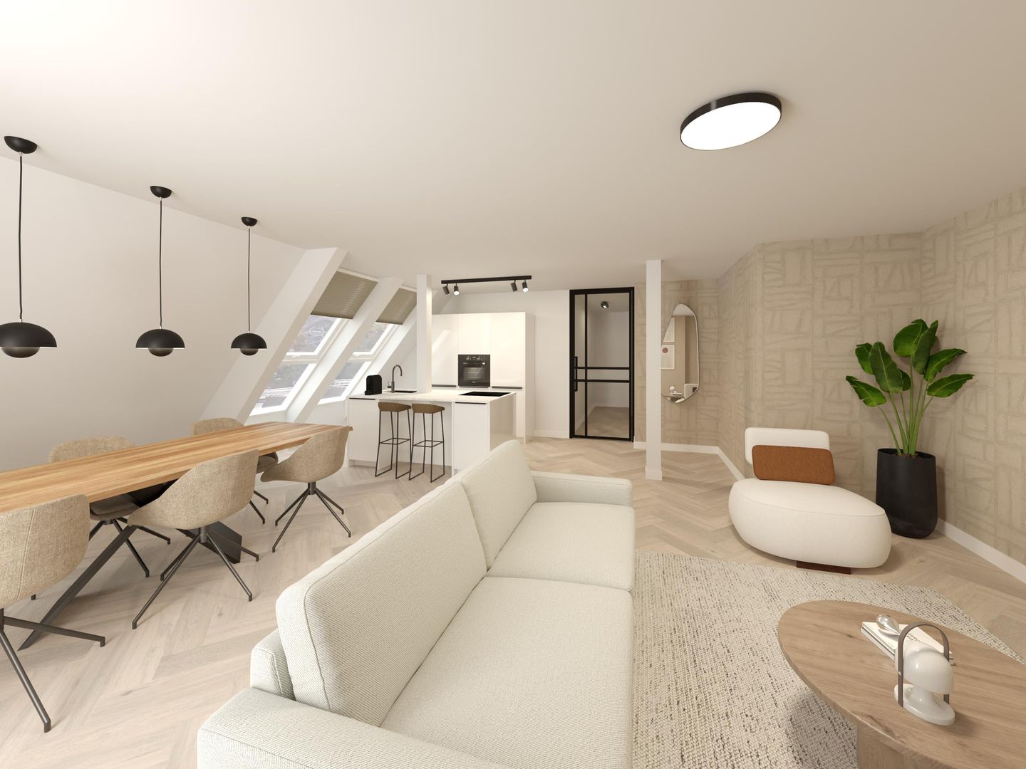 De sfeer is modern, luxe en warm. De keuken beschikt over een kookeiland en een kastwand en is uitgevoerd in een stijlvolle zand/witte kleur met een composieten stenen blad, en met volledig geïntegreerde inbouwapparatuur: een inductiekookplaat, combi-oven, vaatwasser, koel-vriescombinatie en een afzuigkap. De keuken staat in open verbinding met de woonkamer en vormt samen één comfortabele en sfeervolle leefruimte. Een verdiepingshoge stalen deur tussen gang en woonkamer voegt een modern, industrieel accent toe. De 3 slaapkamers liggen rustig en voelen ruimtelijk aan. De badkamer is een plek om tot rust te komen, met grootformaat beige betonlook tegels, matzwarte inbouwkranen en een verlichte spiegel. Zelfs de toiletruimte is met zorg vormgegeven, met een matzwarte kraan op een witte fontein en een strak wandcloset.