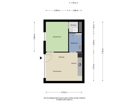 De maandelijkse bijdrage voor de studio en de aparte berging bedraagt € 58,-.
