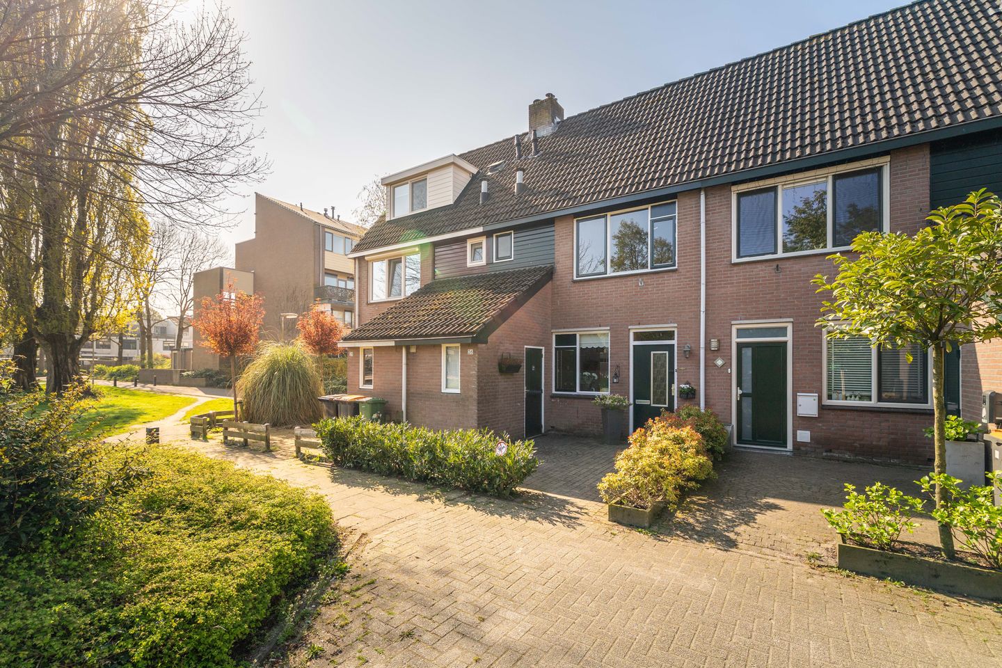 Aan de voorzijde van de woning is ruimte voor containers. Ook is daar een praktische berging aanwezig voor je fietsen of als extra opslagruimte.