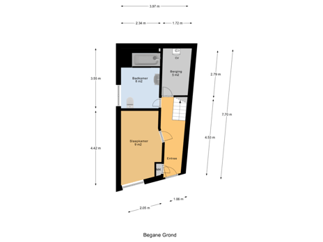 Achter de voordeur is een hal met een forse berging met wasmachineaansluiting, c.v.-ketel en genoeg ruimte voor je fiets of andere zaken. Op de begane grond is een slaapkamer en een royale badkamer met een wastafelmeubel, toilet en een ligbad waar je ook in kunt douchen. Tegelwerk en sanitair ziet er netjes uit. Misschien wil je het vervangen, die keuze is aan jezelf natuurlijk.