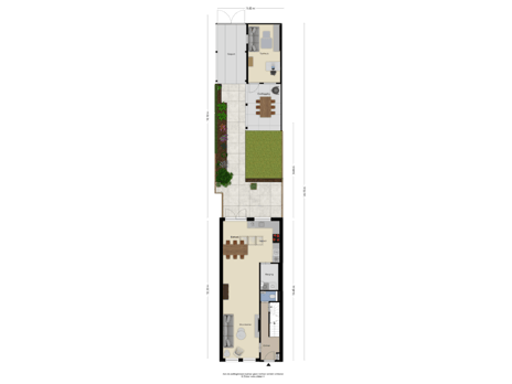 - 95 m² (18,00 meter diep en 5,30 meter breed)