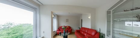 De woonkamer is vergroot met een voormalige slaapkamer, maar de entreedeur van deze slaapkamer is in bedrijf gebleven. Het is dus zeer eenvoudig om de woonkamer weer op te delen in 2 delen; 3de slaapkamer en woonkamer!