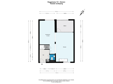 De informatie is door ons met de nodige zorg samengesteld. Voor enige onvolledigheid, onjuistheid of anderszins, dan wel de gevolgen daarvan, wordt onzerzijds echter geen aansprakelijkheid aanvaard. De woning is ingemeten volgens de branche brede meetinstructie, gebaseerd op de NEN-2580-norm.