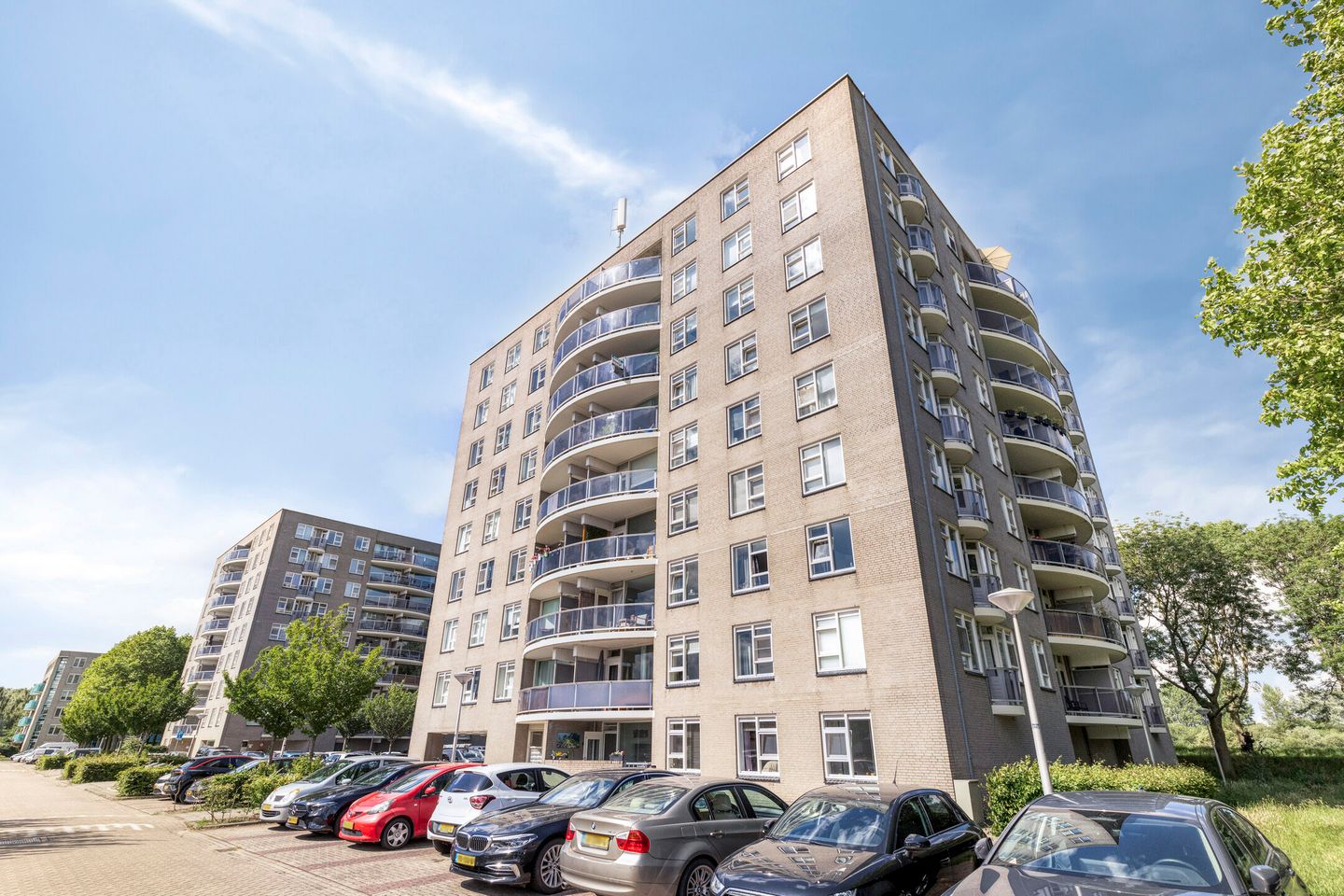 ''In 2023 hebben we het appartement met veel plezier opgeknapt en er ons eigen thuis van gemaakt. Wat we zo bijzonder vinden aan deze plek is de rust in de wijk, terwijl de stad nooit ver weg is — binnen 10 minuten fietsen of scooteren we naar Amsterdam. Het uitzicht vanaf de zevende verdieping verveelt nooit. ’s Avonds is het heerlijk zitten op het balkon in de zon. Dat gaan we missen. Het gebouw is rustig en de sfeer is gemoedelijk, met vriendelijke buren. Het is tijd voor een nieuwe stap, maar we laten dit huis met een glimlach achter. We hopen dat de nieuwe bewoners zich hier net zo thuis zullen voelen als wij.''