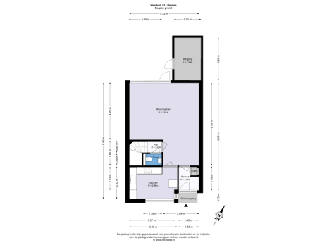 - 48 m² (9,26 meter diep en 5,19 meter breed)