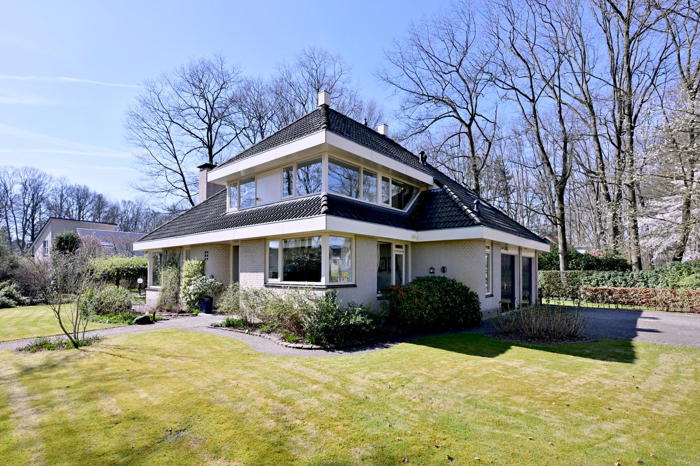 Oprit met plaats voor meerdere auto’s leidt naar het huis en de tuin. De fraaie onder architectuur aangelegde tuin heeft o.a. een groot grasveld, rijke borders, hortensia’s, rododendrons, magnolia, hagen, vijver en een bijzonder groot terras (ca. 70 m²). Achter in de tuin staat een houten tuinschuur met grondwaterpomp voor tuinbesproeiing en houtopslag. In 2006 is een mooie veranda aangebouwd met terrasverwarming, verlichting en elektrisch bedienbaar dakraam. Een heerlijke plek om lang van het buitenleven te genieten.