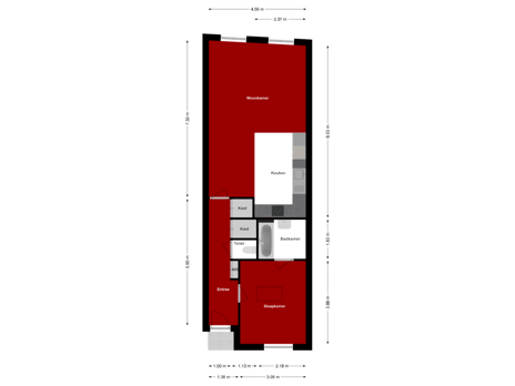 - 25 m² (5,40 meter diep en 4,70 meter breed)