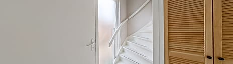 Laminaatvloer en trapopgang naar zolder.