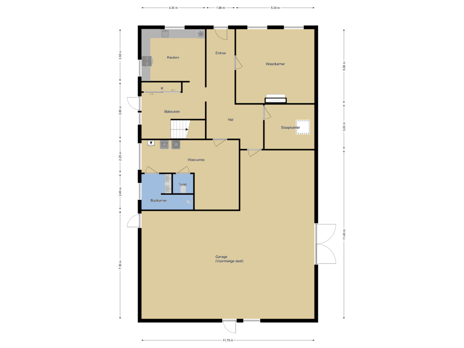 Vanuit de hal is er toegang tot de voormalige deel. Hier stonden vroeger de dieren waardoor het ook veel soberder was afgewerkt dan het voorhuis. Wanneer je de deel inloopt, wordt je verrast door een enorme ruimte waarbij je tot in de hoge nok de kapconstructie inkijkt. De houten gebinten (spantwerk) springen gelijk in het oog en ademen nog de sfeer van vroeger. Deze ruimte is ca. 108m2 groot en biedt volop mogelijkheden om er een eigen invulling aan te geven. Doordat het dubbele deuren naar de oprit heeft, rij je hier eenvoudig een auto of andere voertuigen naar binnen. Vandaar dat wij de deel ook als ‘garage’ hebben bestempeld. Hou je van klussen of heb je een specifieke hobby, dan wordt je vast blij van deze ruimte.