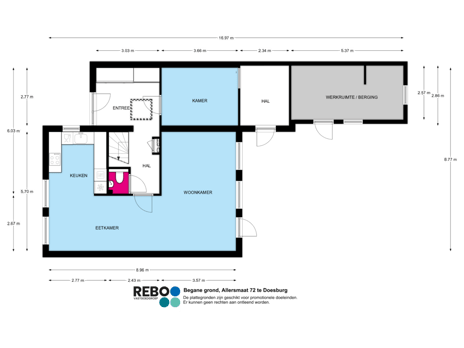 - 108 m² (12,00 meter diep en 9,00 meter breed)