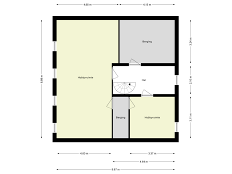267 m² (16,30 meter diep en 16,40 meter breed)