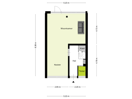 - 66 m² (9,75 meter diep en 6,75 meter breed)