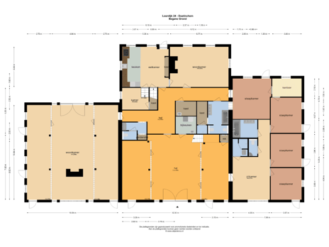 Voor de indeling van maar liefst 466 m² aan woonoppervlakte, verwijzen wij u graag door naar de plattegronden in deze brochure. Samenvattend komt het er op neer dat op de begane grond een royale ontvangstruimte als entree fungeert, en een ruim opgezette eetkeuken aanwezig is, net als 3 woonkamers/hobbyruimtes, 4 badkamers en 5 slaapkamers. De hierna volgende fotoreportages zullen u een goed beeld geven van het geheel.