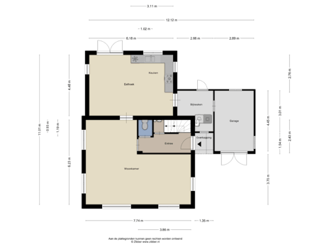 De bijkeuken is praktisch ingericht met plek voor wasapparatuur, de CV-ketel (2008) en de achterdeur. Vanuit hier loop je door naar de inpandig bereikbare garage, ideaal als hobbyruimte of opslag.