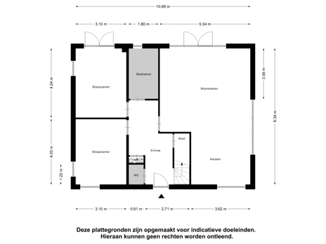 Bij binnenkomst via de ruime entree ervaart u direct de prettige sfeer en de doordachte indeling van deze woning. Vanuit de hal zijn het toilet, twee ruime slaapkamers, de badkamer en de royale woonkamer met open keuken bereikbaar. Onder de trap is een praktische kastruimte aanwezig, voorzien van een aansluiting voor de wasmachine.