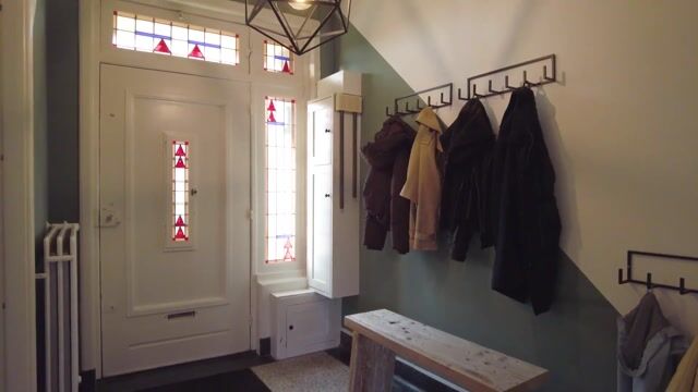 Via de ruime hal met karakteristieke elementen zoals de terrazzovloer en het glas in lood bereikt u de woonkamer. De woonkamer bevindt zich aan de voorzijde van de woning en wordt gekenmerkt door de haard, die een sfeervol middelpunt vormt en wederom het glas in lood. Daarnaast is er een praktische trapkast aanwezig en is er toegang tot de kelder, wat zorgt voor extra bergruimte.