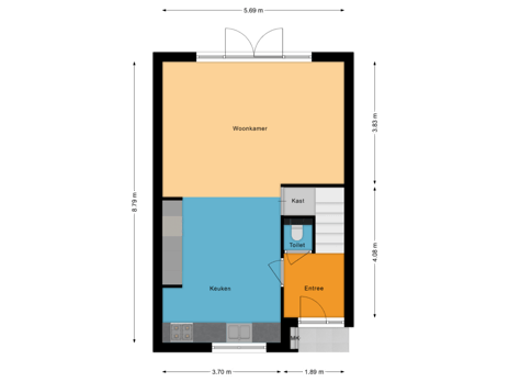 - 83 m² (14,00 meter diep en 5,93 meter breed)