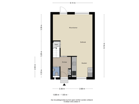 Aan de voorzijde van de woning bevindt zich de entree. In de royale entree vindt u de meterkast, welke voorzien is van 4 groepen en 2 aardlekschakelaars en toiletruimte. Tevens bevindt zich hier de trapopgang naar de eerste verdieping en toegang tot de woonkamer. De wanden en plafond zijn glad gestuukt en uitgevoerd met een laminaatvloer.