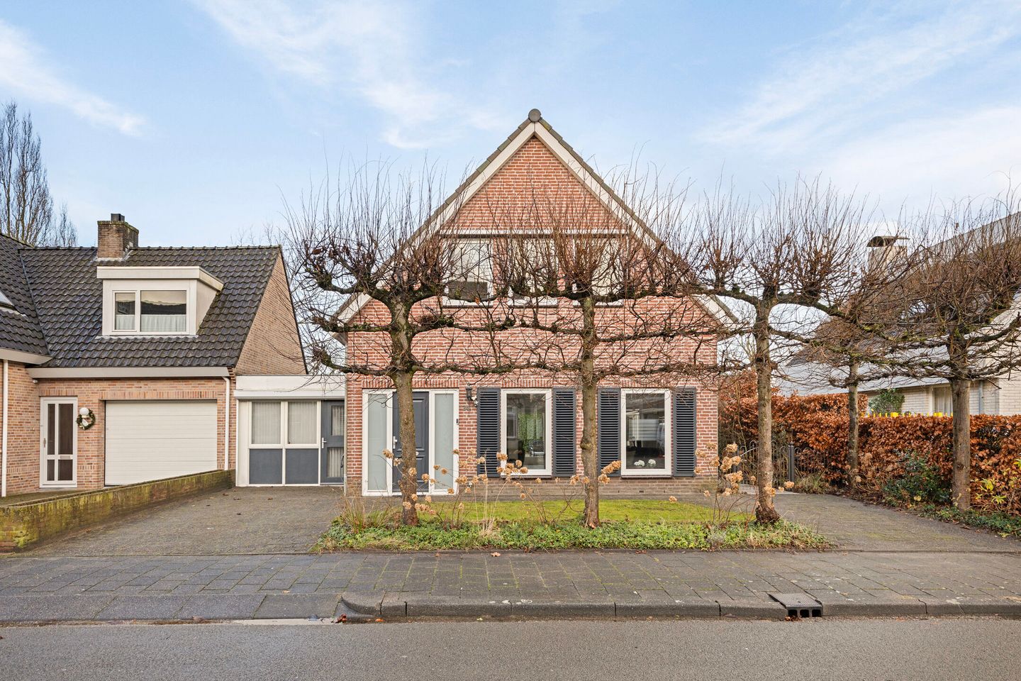 De woonkamer is ruim opgezet, met uitzichten naar voor-, zij- en achterzijde, wat zorgt voor veel natuurlijk licht. De woonkamer is bovendien voorzien van een zandstenen-schouw met gashaard. Het stucplafond is afgewerkt met een sierlijst en voorzien van inbouwspots. Hardhouten schuifpuien in de woonkamer en de keuken geven toegang naar de ruime achtertuin.