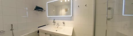 - 2 douches, ligbad, 2 toiletten, wastafelmeubel, en wastafel
