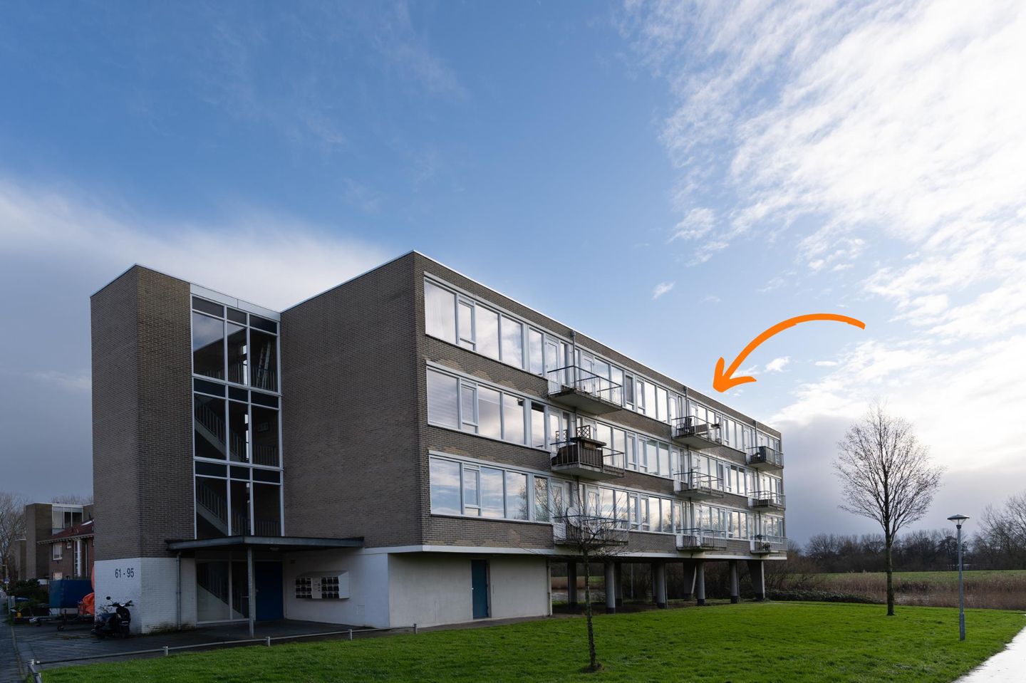 Aankomst bij het verzorgde complex middels gesloten entree met bellentableau, brievenbussen, trapopgang naar de verdiepingen en toegang tot de gemeenschappelijke fietsenberging.