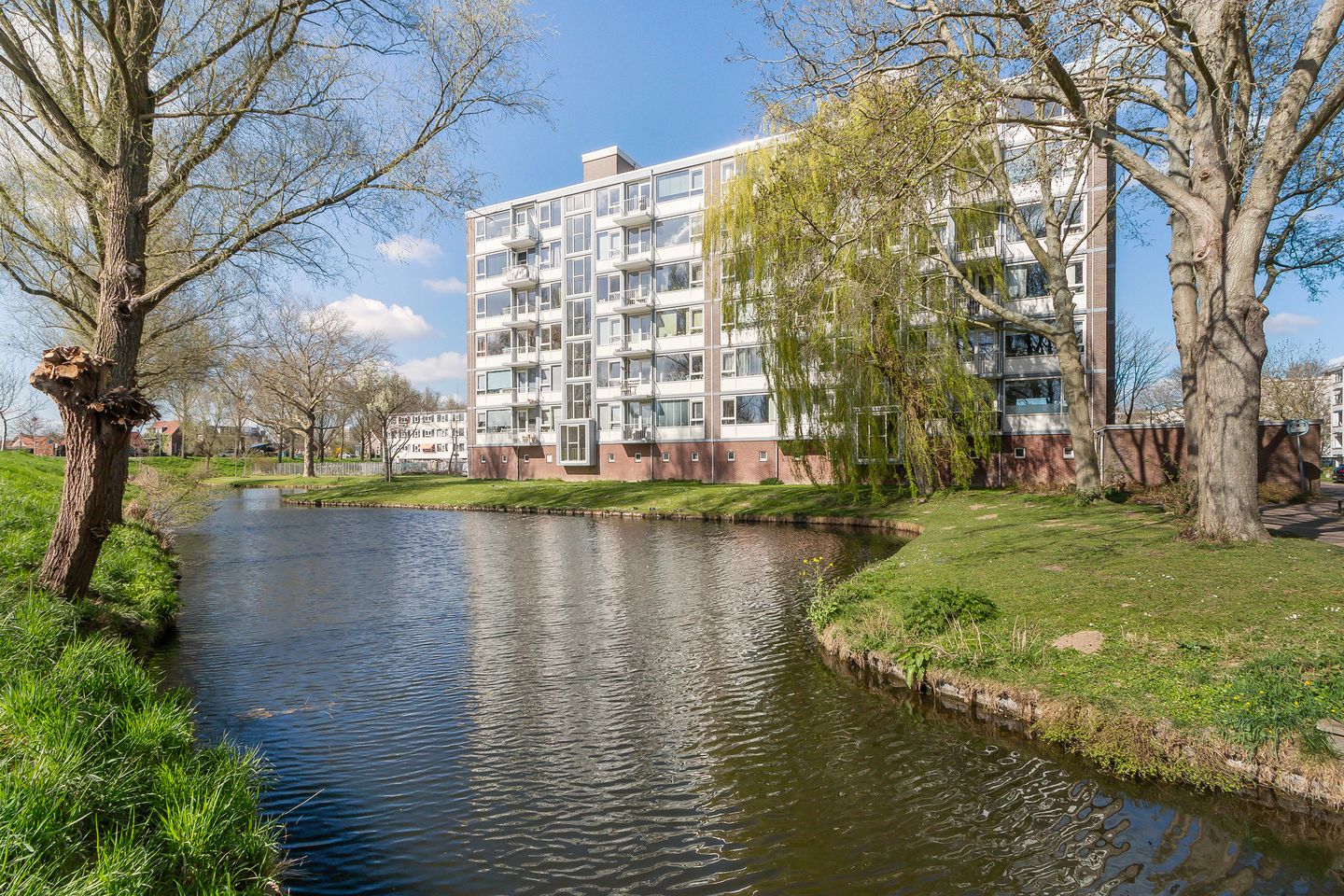 Wat een verrassend ruim 4-kamerappartement (voorheen 5-kamerappartement) met 2 balkons en uitzicht op water en groen en achterliggende dijk en park!