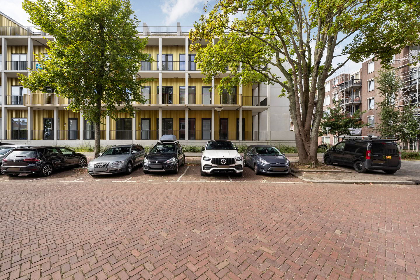 - Parkeren op eigen terrein. Per appartement is afname van 1 parkeerplaats verplicht, kosten € 25.000 k.k.