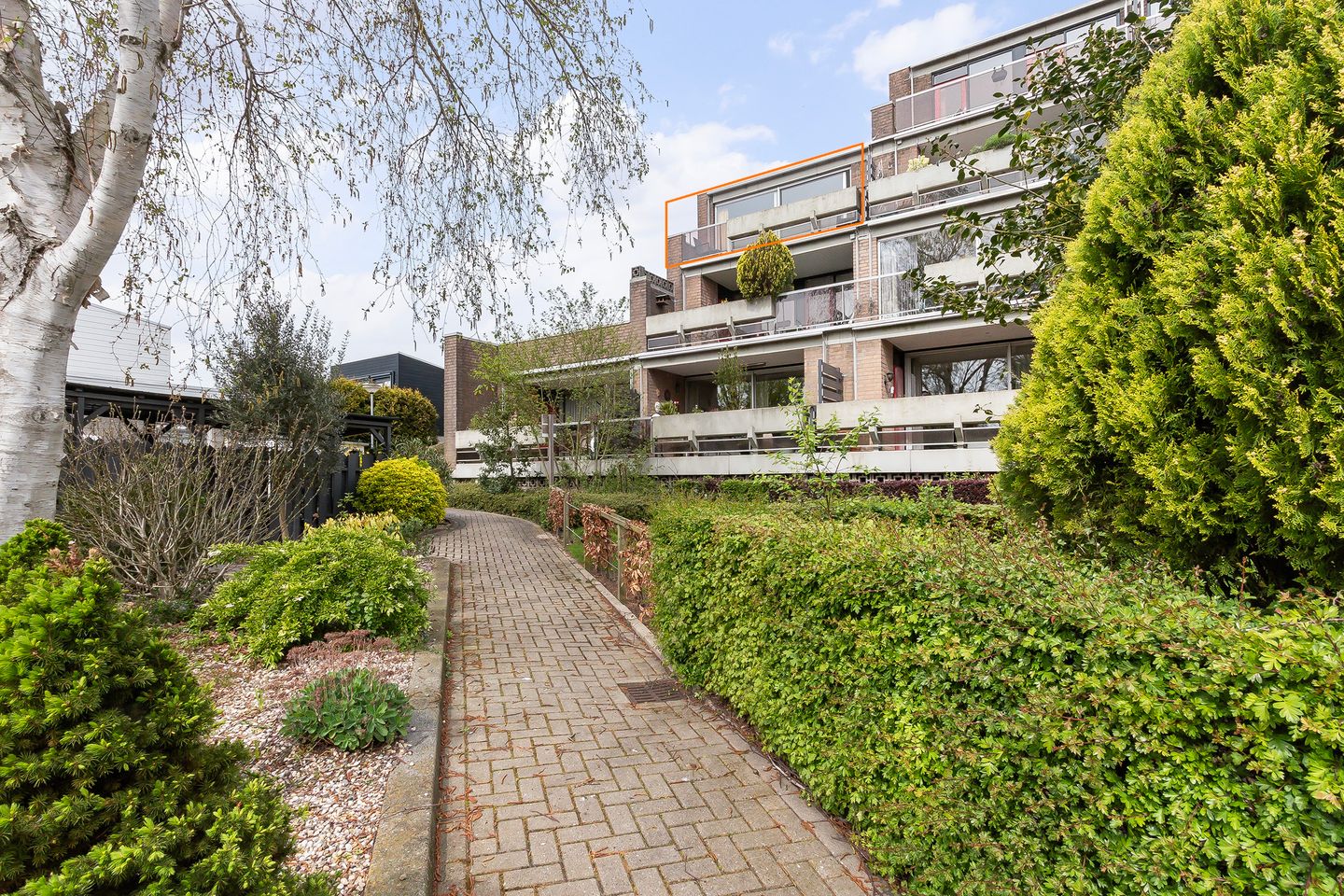 - Zonnig terras met terrastegels en vaste bloembakken;