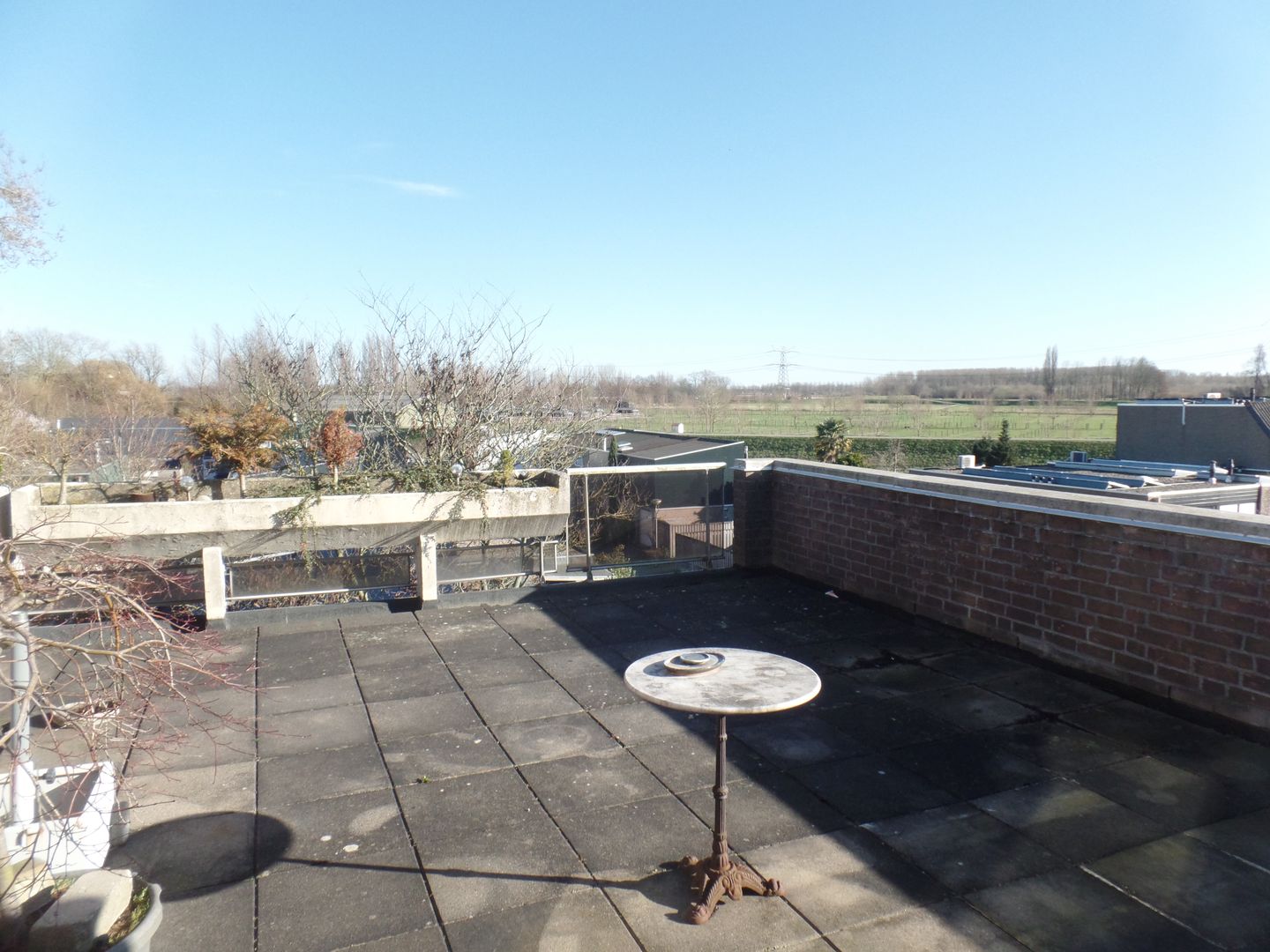 * Woonkamer (oppervlakte ca. 27 m² inclusief keuken) met schuifpui naar het balkon en deur naar het terras.