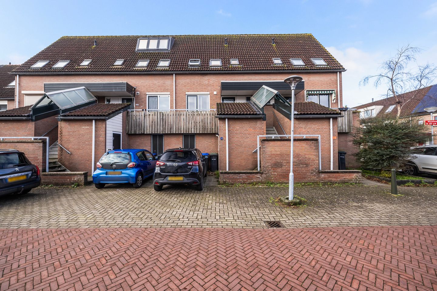 Aan de voorzijde van de woning is de berging en de eigen parkeerplaats te vinden, door middel van de trapopgang bereik je de voordeur.