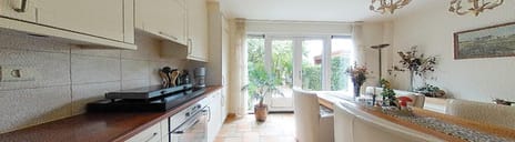 Eetkeuken (2007), uitgevoerd in hoekopstelling en voorzien van inbouwapparatuur: 4-pits gaskookplaat, afzuigkap, elektrische oven en koel-vriescombinatie. De keuken is wel aan modernisering toe. Vanuit de keuken zijn er openslaande deuren naar de tuin. De gehele verdieping is voorzien van plavuizen.
