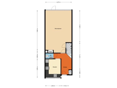 - 52 m² (12,00 meter diep en 4,32 meter breed)