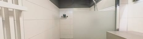 - 2 inloopdouches, toilet, 2 wastafels, en 2 wastafelmeubels
