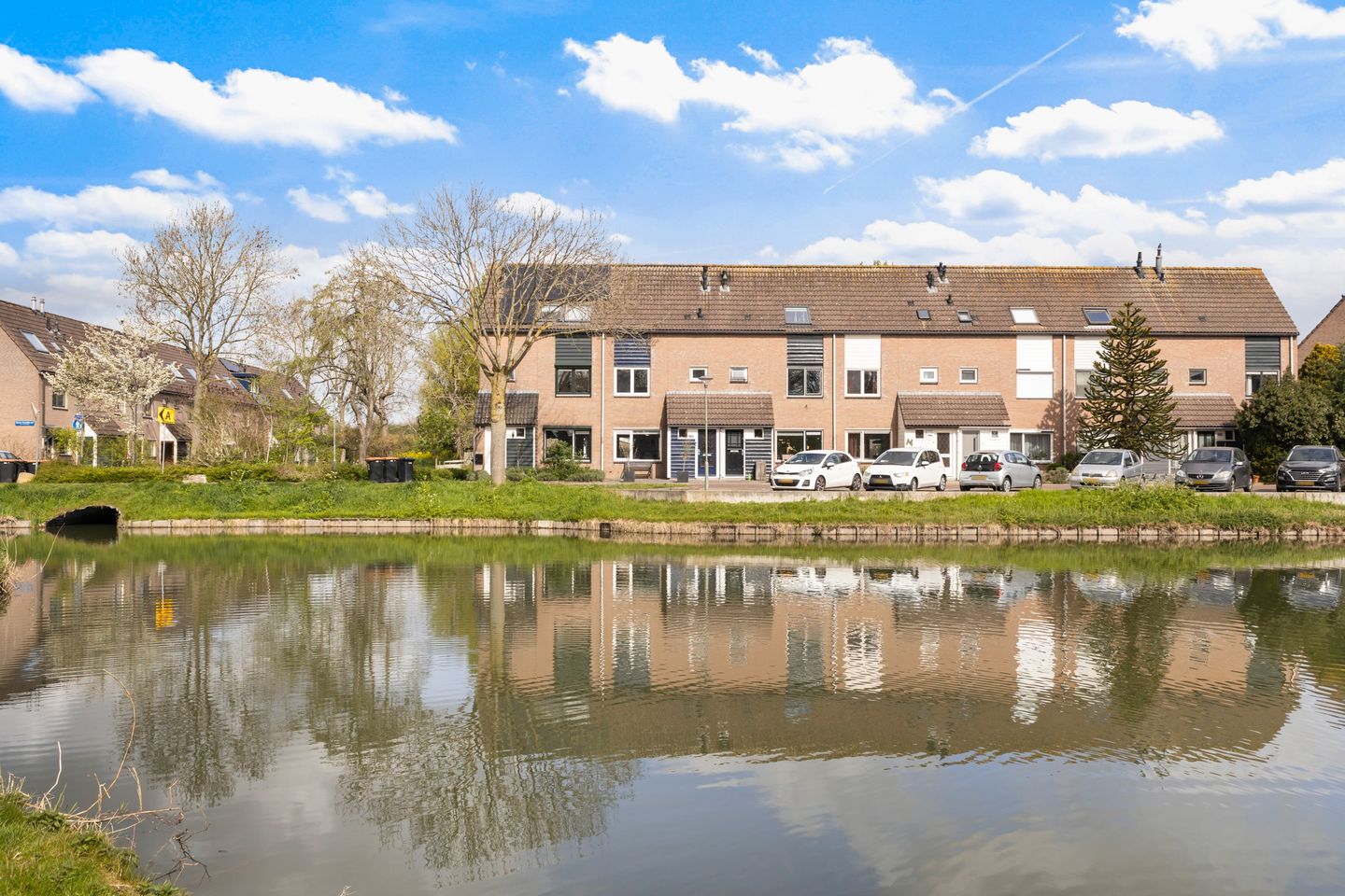 De lichte woonkamer van ca. 9 meter diep met open keuken en grote raampartijen biedt een ruimtelijk gevoel en mooi uitzicht op de vijver. De ca. 12 meter diepe achtertuin ligt op het zonnige westen.