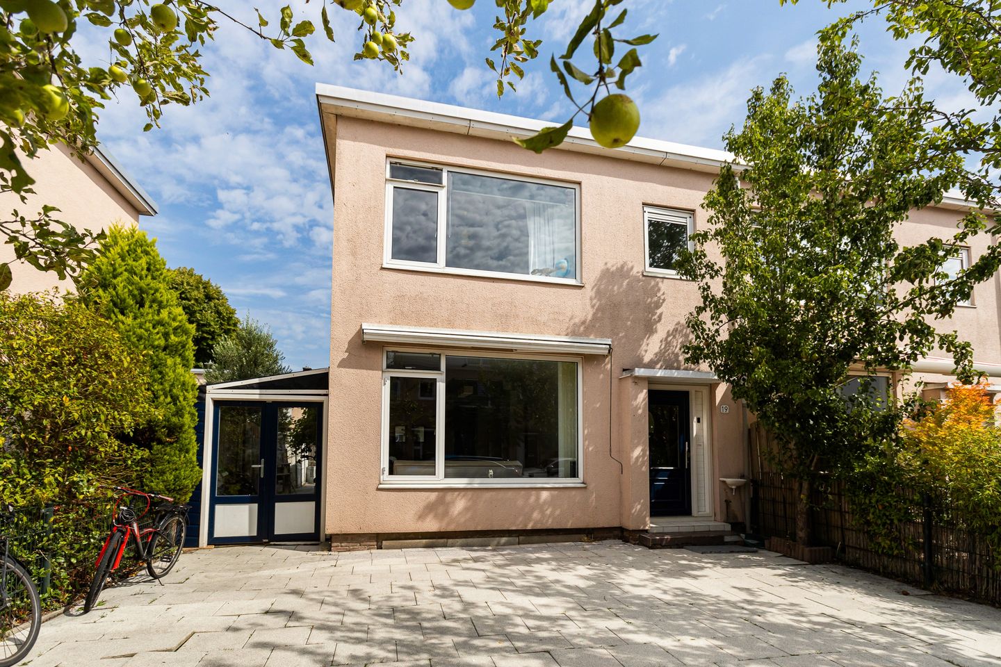 • Voortuin: Ruim en betegeld, met appelboom,perenboom,kersenboom en pruimenboom overkapping aan de zijkant met druivenstruik.
