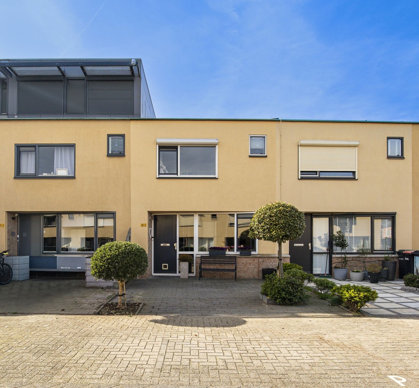 De ruime achtertuin is gelegen op het zonnige westen en beschikt over elektrisch bedienbare zonwering, een eigen berging met een eigen achterom.